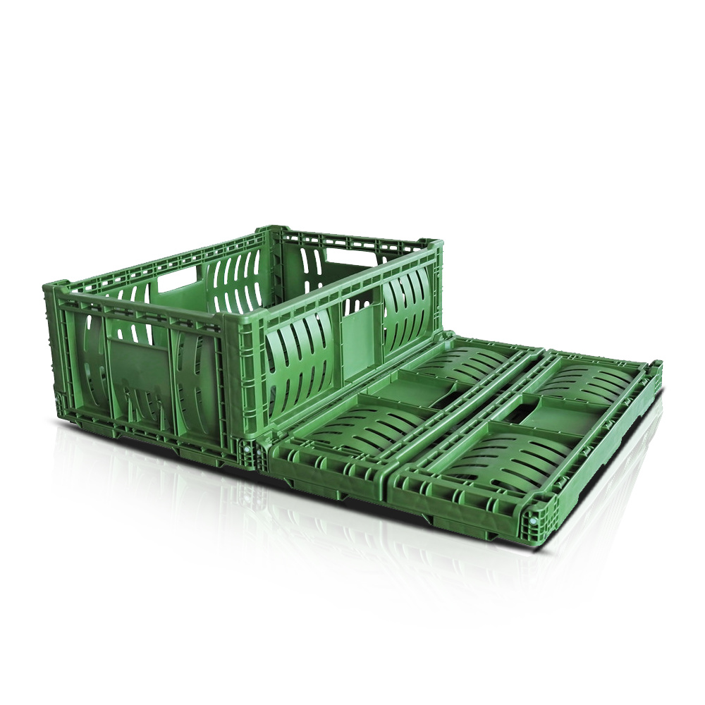 Den fällbara plastlådan antar internationella standarder och samarbetar med 1210-typ, 1208-typ europeisk standard eller T11-typ japansk standardpall, som kan realisera mekaniserad hantering, förbättra omsättningseffektiviteten och kontrollera graden av lastskador; den kan även användas med sköldpaddsvagnar för stapling och flyttning.